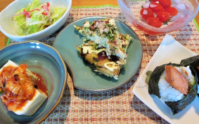 そうめんリメイクふわふわパリパリお好み焼き お美津さんちの赤いサラダ